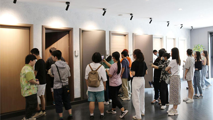 霍尔茨独特的花色纹饰、极具创新性的T型门,以及诠释空间美学的门墙柜一体化产品,引得同学们阵阵惊叹。