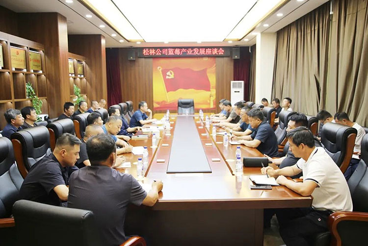 7月11日,松林公司召开蓝莓产业发展座谈会。会上通报公司近期蓝莓产业发展情况,各相关林场分别汇报本单位蓝莓种植面积、品种及预计产量等情况。