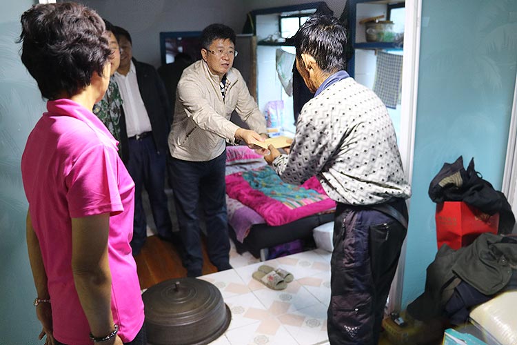 集团工会主席慕广学为贫困家庭送去生活必需品