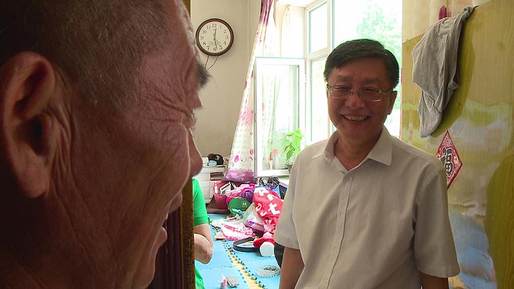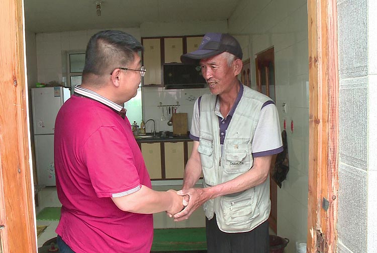 集团总会计师焦鸿靖与贫困老人亲切握手