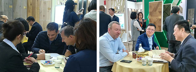 开展首日火爆收官,接待国内外新老客户200余家,外销接待客户78家,内销达成意向客户57家,实现了新突破。 金桥地板喜客盈门,新老客户欢聚一堂。  漂洋过海来看你!
