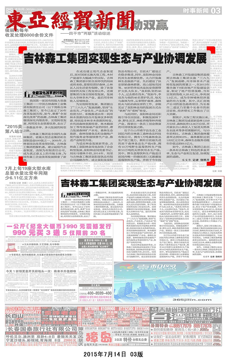 【吉林日报】数业并举 多元发展——吉林森工集团转型发展纪实
