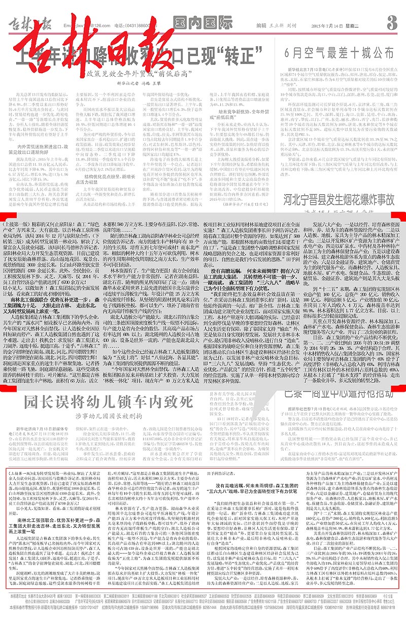 【吉林日报】数业并举 多元发展——吉林森工集团转型发展纪实