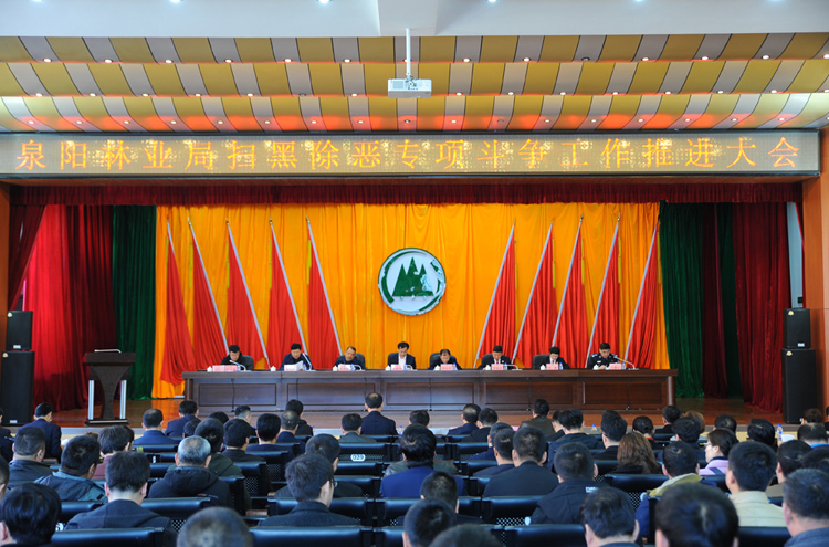 为深入贯彻落实习近平总书记重要指示精神和党的十九大部署,构建林区扫黑除恶齐抓共管、综合治理工作格局,确保泉阳林区扫黑除恶专项斗争工作取得实效。4月3日,泉阳林业局召开扫黑除恶专项斗争工作推进大会,对全局扫黑除恶专项斗争进行再动员、再部署,会上贯彻落实了全省林草扫黑除恶专项斗争推进会议和有关扫黑除恶文件精神,总结通报了前一阶段我局扫黑除恶专项斗争工作情况,安排部署当前和今后一个时期扫黑除恶工作。