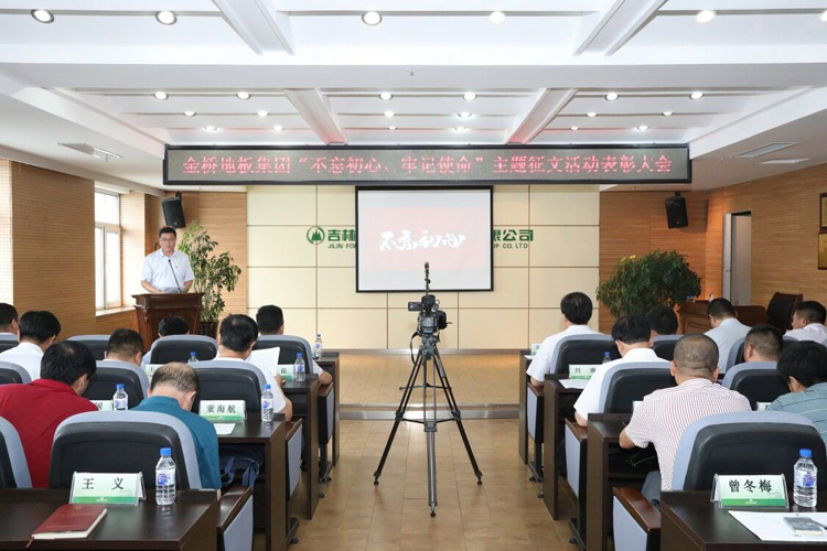 7月12日,金桥地板集团召开“不忘初心、牢记使命”主题征文活动表彰大会。集团班子成员、子分公司班子成员、机关副处级以上干部、获奖者代表参加了会议。