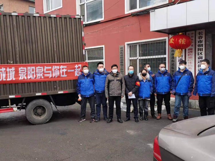 “泉阳泉,向前线英雄致敬”系列活动第五站,向奋战在经开区管委会、会展街道、前进街道、卫星社区等多个街道、社区办事处的“英雄们”送去泉阳泉天然矿泉水。