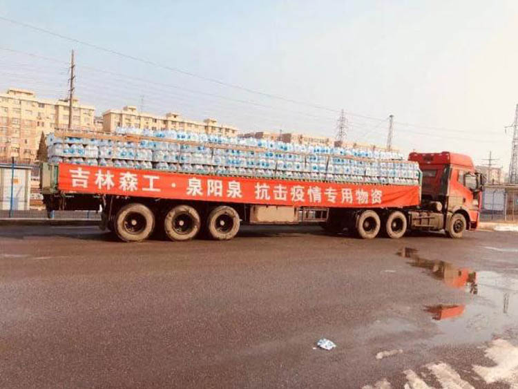 2020年农历庚子年初,一场突如其来的新型冠状病毒肺炎疫情牵动着国人的心。吉林森工集团泉阳泉饮品有限公司启动“向前线英雄致敬”系列活动,为遏制与抗击新冠肺炎疫情的前线英雄们送上祝福,全国公路物流瘫痪,为保障大连人民疫情期间生活用水,吉林森工用铁路专列向大连输送泉阳泉矿泉水。