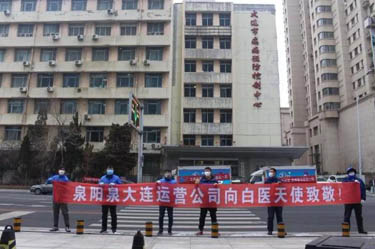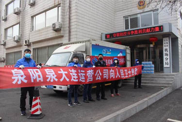 春节本应是辞旧迎新、阖家团圆的时刻,但那些奋战在抗击疫情一线、放弃假期坚守在医疗工作岗位上的前线英雄们,他们用‘舍’和‘守’撑起百姓的安康,为人民的健康保驾护航。”吉林森工集团泉阳泉饮品有限公司以力所能及的方式,与前线的英雄们心连心、共进退,将泉阳泉天然矿泉水送至一线各单位。用实际行动投入到抗击疫情的战役中,与最美的“逆行者”同行!泉阳泉大连运营公司第一时间响应总部号召,疫情期间,风雪无阻,运用铁汽联运的方式以最快的速度、最短的时间向大连市民送去生活用水,与人民同在,并协同合作伙伴向社会提供必要支持。