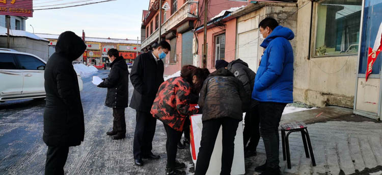 为守住前沿关口,守护健康安全,共同担负林区疫情防控责任,自2月11日起,露水河林业局组建了200余人的志愿者队伍,援助地方政府设立的10个居民小区防控卡点开展工作,并在4个林场出入口设立了防疫检查点,对出入人员和车辆进行信息登记,及时排查、上报外来人员,坚决防止疫情由外部输入。   在各执勤卡点,赵伟随机查看排查登记表,现场督导执勤人员开展工作,并详细了解各卡点的任务形势、人员分配、作息时间和就餐取暖等情况。他对执勤人员吃苦耐劳、坚守岗位、甘于奉献的精神给予充分肯定,同时叮嘱检查值守人员注意保暖,做好自身防护。