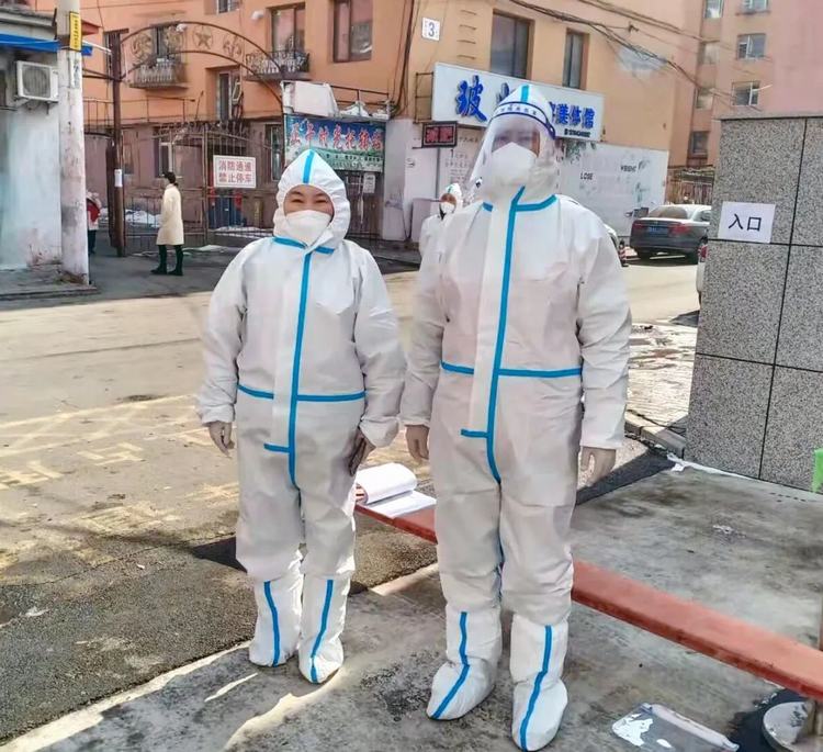 夫妻二人3月6日,正式投入疫情防控工作,在蛟河教堂核酸采集点共引导近2000人顺利采集了核酸。7日,夫妻二人负责给小区隔离人员发放药品并贴封条,背着十几斤的药品,穿着厚重的防护服,夫妻俩楼上楼下跑,年近50岁的人,一趟下来就已累得直不起腰,二人回家已经是晚上10点了,脱下防护服,里面的棉袄已经完全湿透。8日,他们接到了协助社区发放通行证的通知,有的单元长被隔离,二人就挨家挨户的把通行证送到每家居民手里。9日,夫妻二人又早早来到实验小学核酸采集点,协助医院、社区给居民第二次核酸采集当引导员,期间还帮助楼区隔离人员扔垃圾,协助不能下楼和不能自理人员到家采集核酸,一忙又是到了半夜回家。