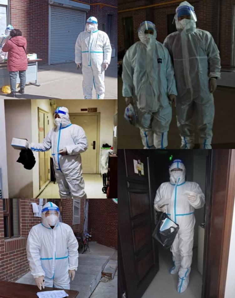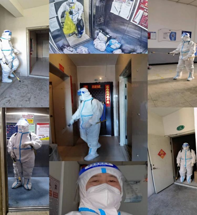 公司党委副书记、工会主席李海林,在文庙街道天胜社区为居家隔离人员贴封条,做楼道消杀,运送物资,转运垃圾。