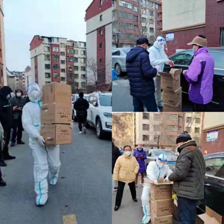 公司党委副书记、总经理王庆丰和爱人吕淑芳,参与丰满区泰山街道翰林院社区,核酸检测工作,指导亮码,维持现场秩序,看守防疫卡点,为居民上门派发试剂盒,运送防疫物资等。