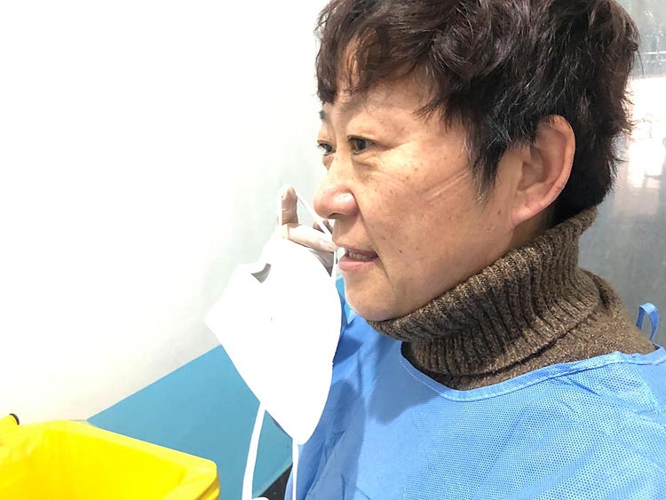 东北的初春,天气依然寒冷,穿着防护服忙起来会出很多汗,凛冽的寒风一吹,身上的汗水又瞬间变得冰冷。每采集完一个样本,双手就要消毒一次,零下二十摄氏度的低温,每天消毒上千次,越到后面手越冰得刺骨,最后都没有了知觉……就是在这样冷热交替的状态下,她每天要工作至少8小时,身上、手上、胳膊上起满了湿疹。同时长时间的站立和不停地屈身躬膝,腰酸背痛,腿都累得抬不起来。
