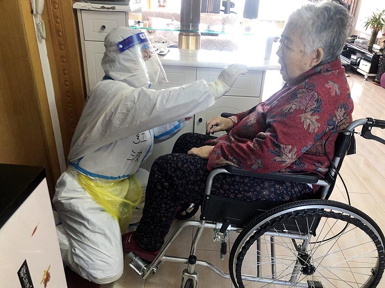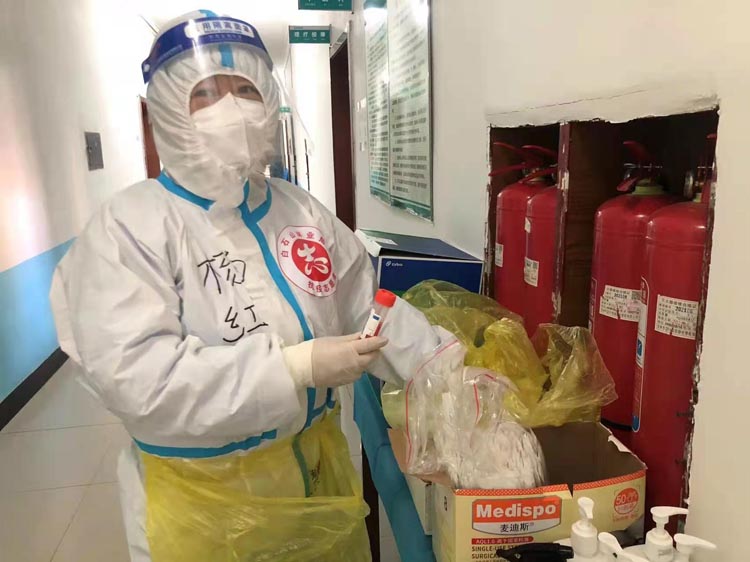 作为单位护理骨干的她,总是带头冲向最危险的地方。在十几轮的核酸采样过程中,白林医院、白石山镇社区、后柳村、新兴委、沿河委、海林委、曙光委、西山小区、利生委、育红委等核酸采样点都有她忙碌的身影。