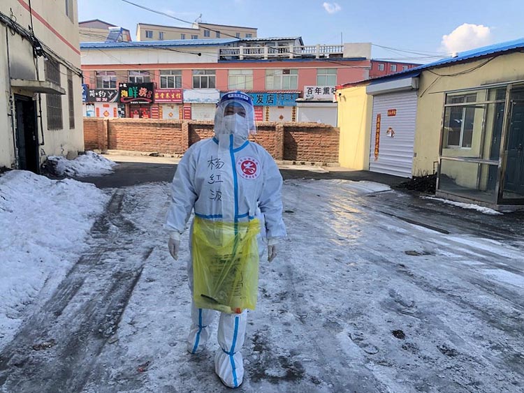初春三月,小雪扮靓了大地,人们眼里最美的不是雪景,而是走街串户的“雪墩墩”。白林医院不但承担着核酸点的检测任务,同时还负责老、弱、病、残、孕等特殊群体上门检测和周边十多个村的核酸检测任务。杨红波作为其中一员,穿着笨重的防护服,戴着满是水珠的护目面罩,走街串巷,爬楼入户,马不停蹄地走在村子的小路上,到居民家中或病床前采样。一位偏瘫的老大娘感动地对她说:“孩子,我听说你们不敢吃饭、不敢喝水,还垫着尿不湿,你们受苦了,大娘给你们添麻烦了……”面对大娘主动的配合和关心的话语,一股暖流涌上心头,感觉自己的干劲更足了。