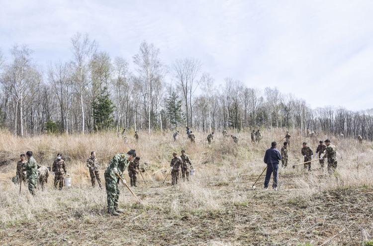 随后,全体党员来到大顶子林场27林班5小班,开展了建党百年纪念林植树造林活动。大家分组协作、密切配合,撸起袖子弯下腰,使用苗木镐、苗木铲等工具,打穴、挖坑、栽苗,个个忙得不亦乐乎。营林处技术人员全程对植树造林情况进行现场指导、现场教学,确保苗木栽植质量、工序上不落环节,确保了栽植树苗成活率。此次活动,共种植水曲柳3000余株,种植面积达20余亩,一株株树苗沐浴春光、迎风挺立、生机盎然。