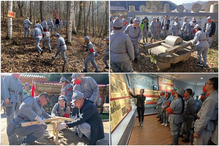 在临江市闹枝镇冰湖村,公司讲解员带领参加活动的党务工作者们沿着崎岖的山路,踏着抗联战士的足迹,倾听抗战故事,探寻当年的抗联遗迹,体会革命先烈征战露宿的艰辛,并参观了抗战密营,实践体验了抗战时期战士们生活使用的碾子、磨盘和捣米锤;在讲解员的指导下,学员们开展了“制作纺车”特色党建实践活动,用制作纺车纺线的活动来追忆老一辈革命者在物资匮乏的战争年代,无畏困难、不怕吃苦的革命精神。另外,实践活动还安排了参观末代皇帝溥仪行宫和现场教学隔江远观朝鲜三五青年铜矿等活动日程。