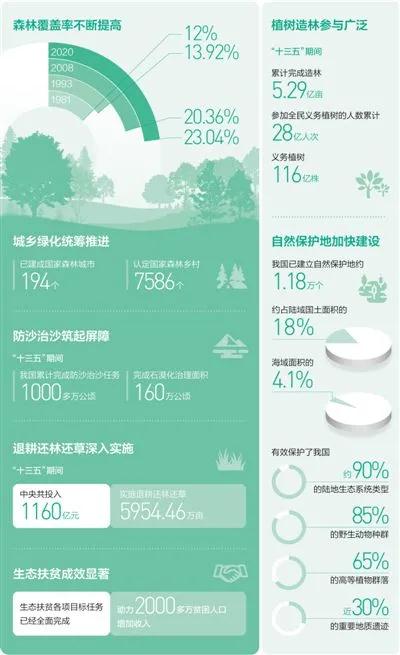 “十四五”规划和2035年远景目标纲要提出,“十四五”时期,森林覆盖率提高到24.1%。国务院办公厅近日印发《关于科学绿化的指导意见》,从完善政策机制、强化科技支撑等方面,提出了引导和促进科学绿化的政策制度措施。“科学绿化、高质量发展将贯穿到国土绿化的全过程和各环节。”刘东生表示。